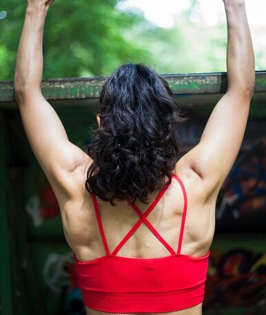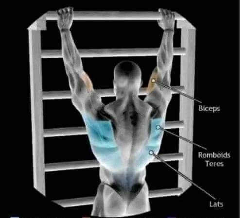 The hanging Lat works and strengthens the following muscle groups: upper back, shoulders, core, forearms hand and wrist flexors.